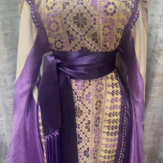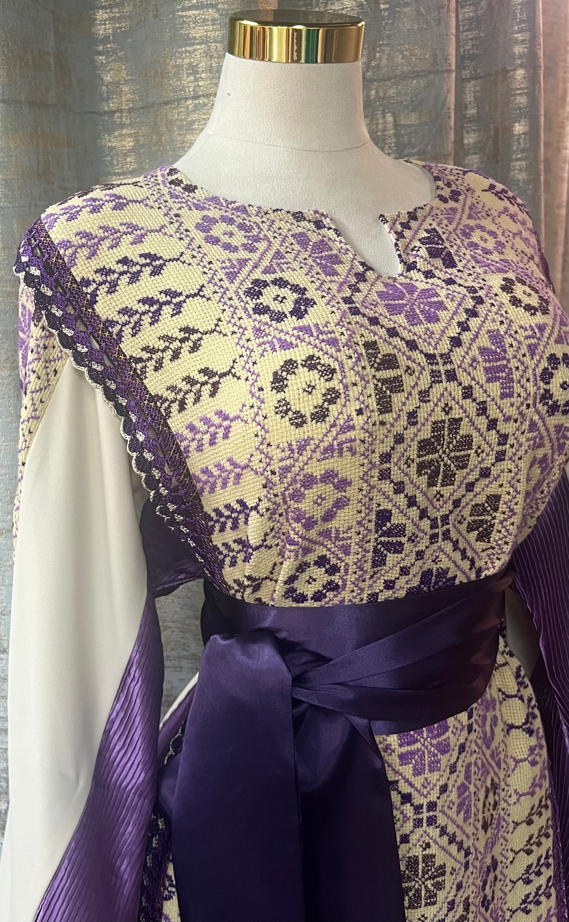 White Handmade Palestinian Thoob in Crepe and Purple Lame Modern Meets Traditional